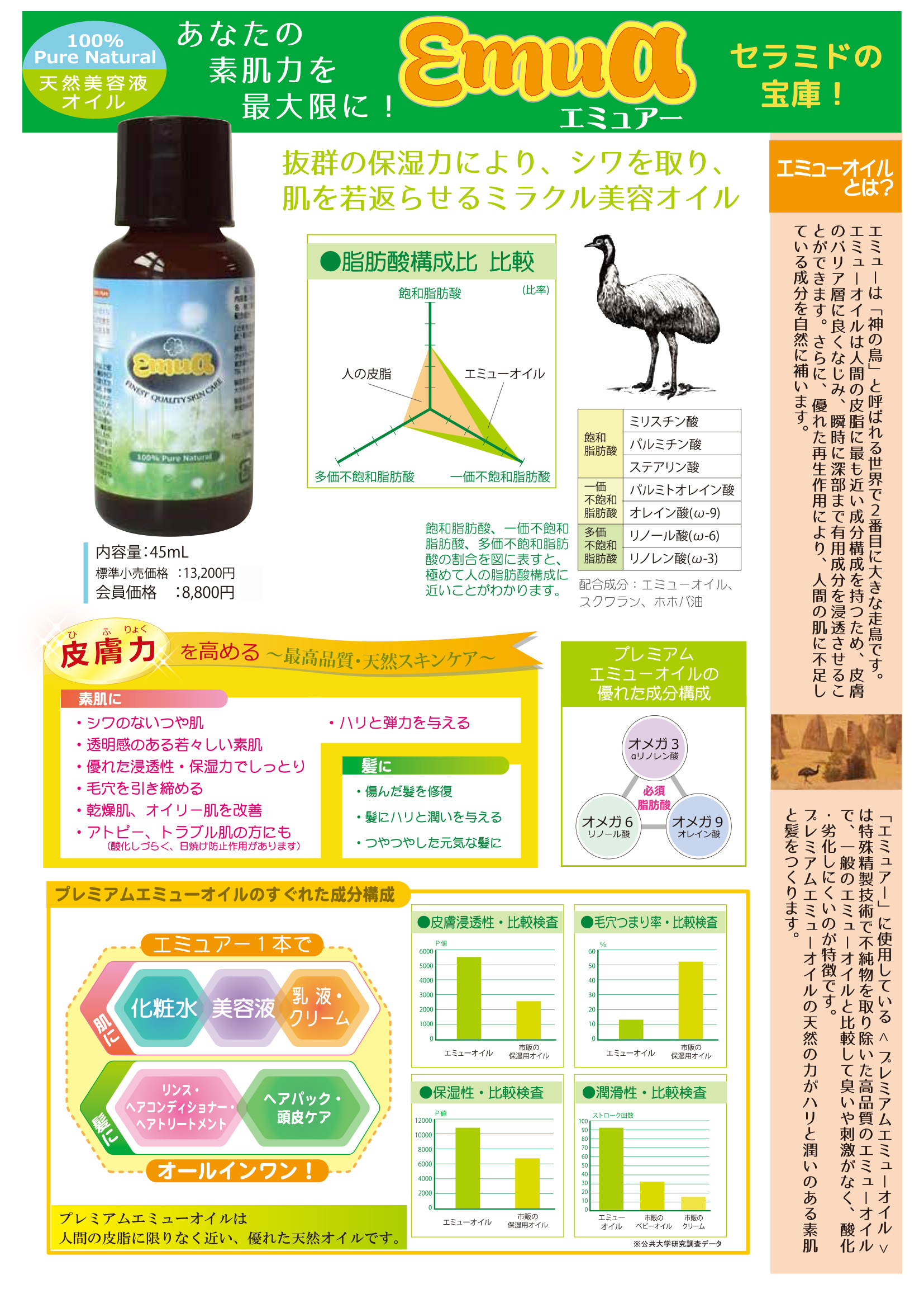 皮膚力を高める、最高品質スキンケア。 プレミアムエミューオイルが肌を保護して健やかで強い肌に。